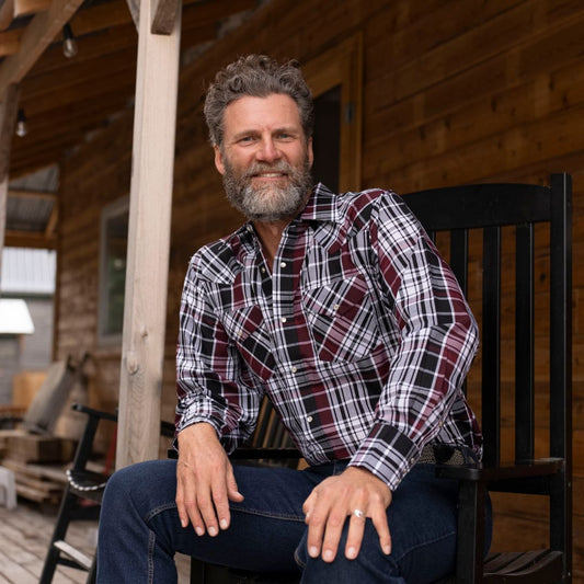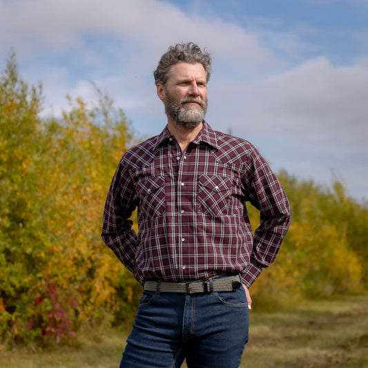 Men's Snap Plaid Shirt (Wine) - I30D02-06