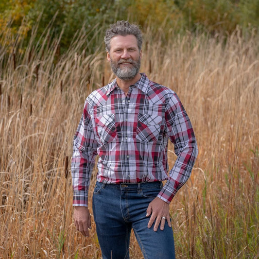 Men's Snap Plaid Shirt (Burgundy) - I30D02-07