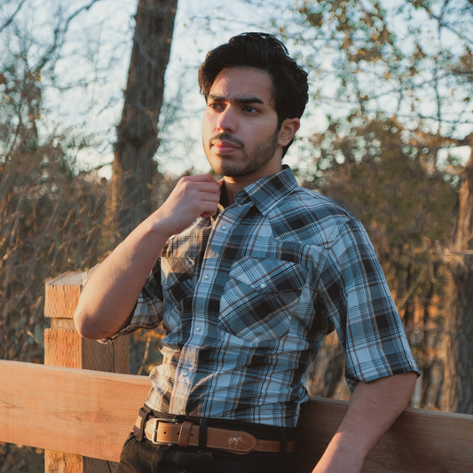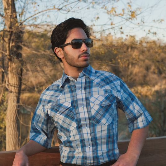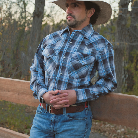 Men's Snap Plaid Shirt (Blue Check) - I30D02-75